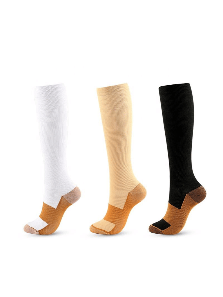 גרבי לחץ לטיסות נסיעות וספורט – 1 שחור 1 לבן 1 וגוף
