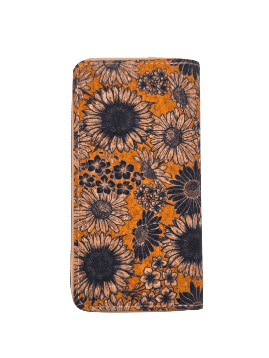 גלי את הקסם שבטבע עם ארנק שעם אמיתי בעיצוב בוהו צבעוני – דגם פרחי חמנית.