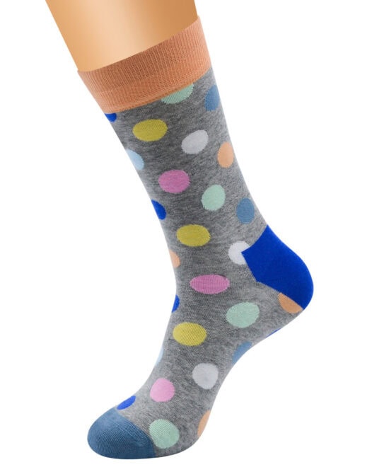 גרביים מעוצבים – קוסמה נקודות רקע אפור נקודות צבעוניות