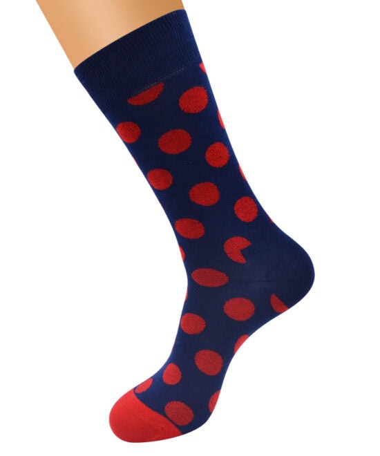 גרביים מעוצבים – קוסמה נקודות רקע כחול נקודות אדומות
