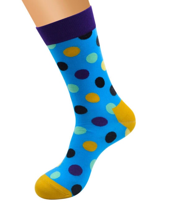 גרביים מעוצבים – קוסמה נקודות רקע תכלת נקודות צבעוניות