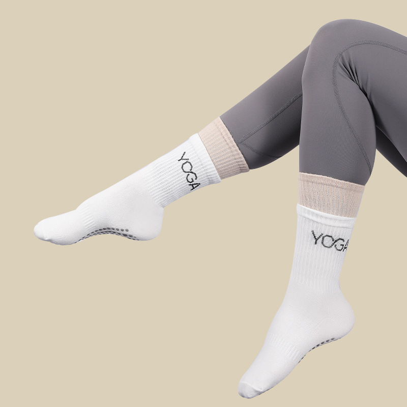 גרביים מקצועיות לפילאטיס שני צבעים – לבן וקרם