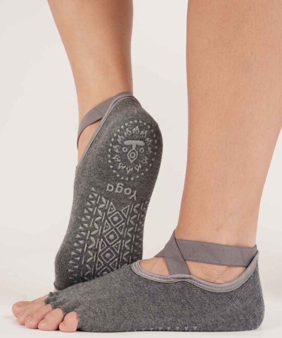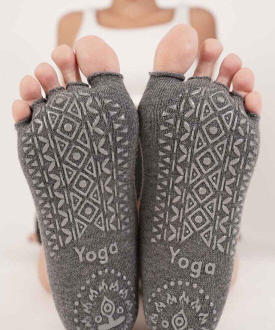 גרבי איקס ללא אצבעות לפילאטיס ויוגה – אפור כהה