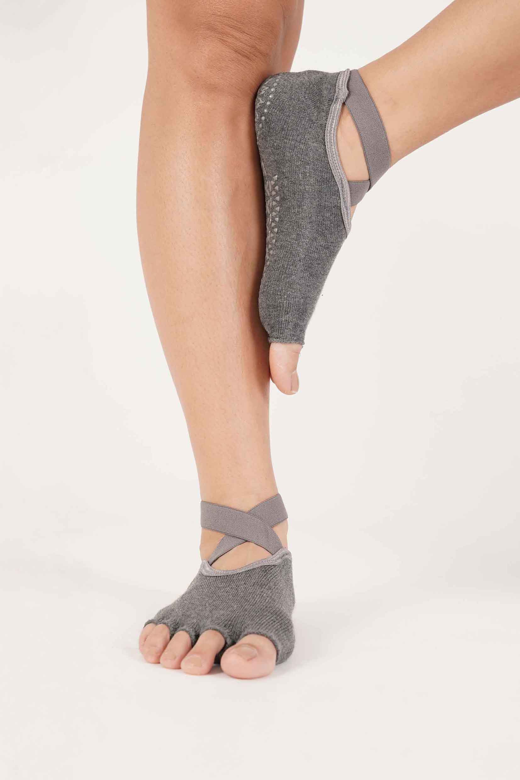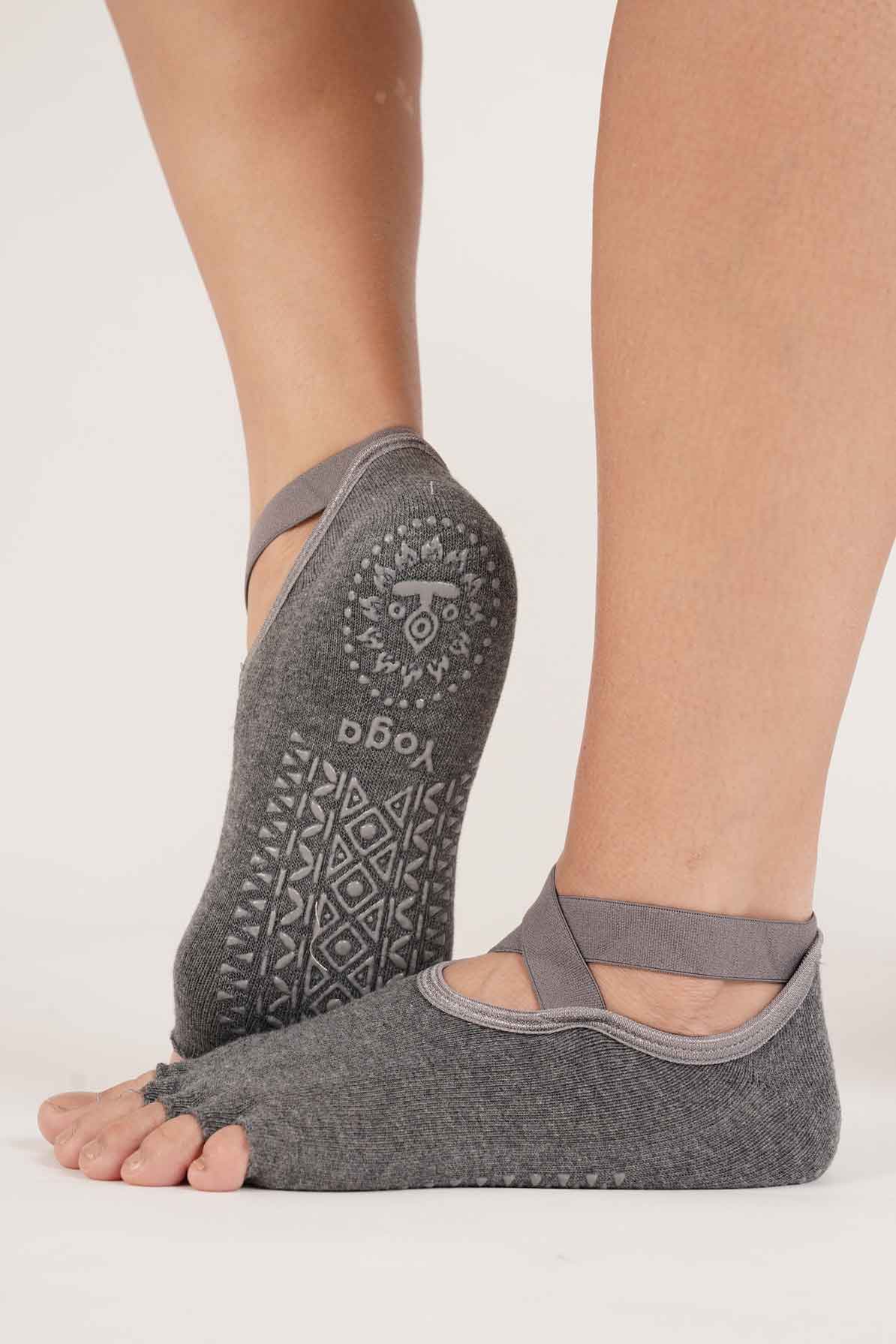 גרבי איקס ללא אצבעות לפילאטיס ויוגה - אפור כהה