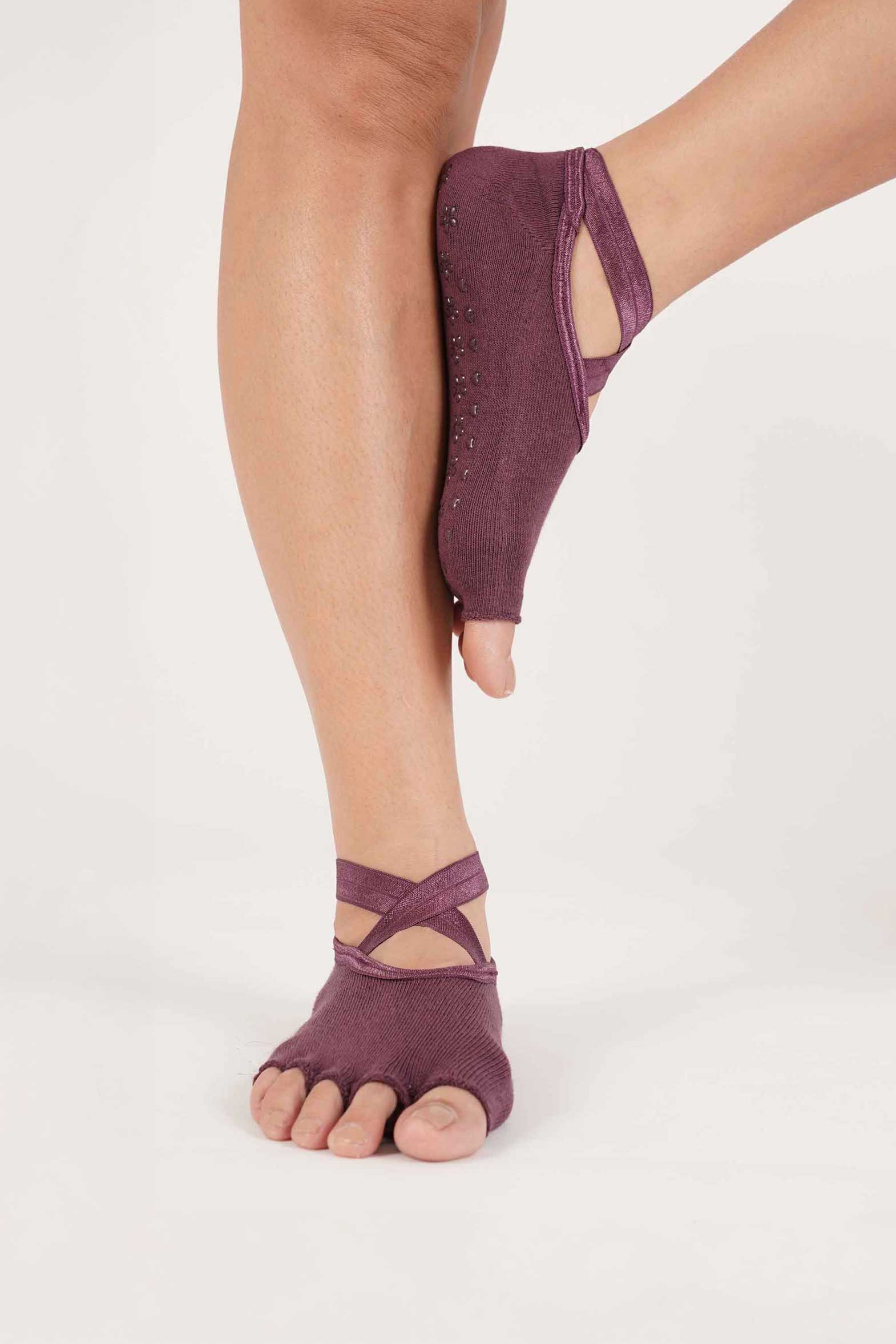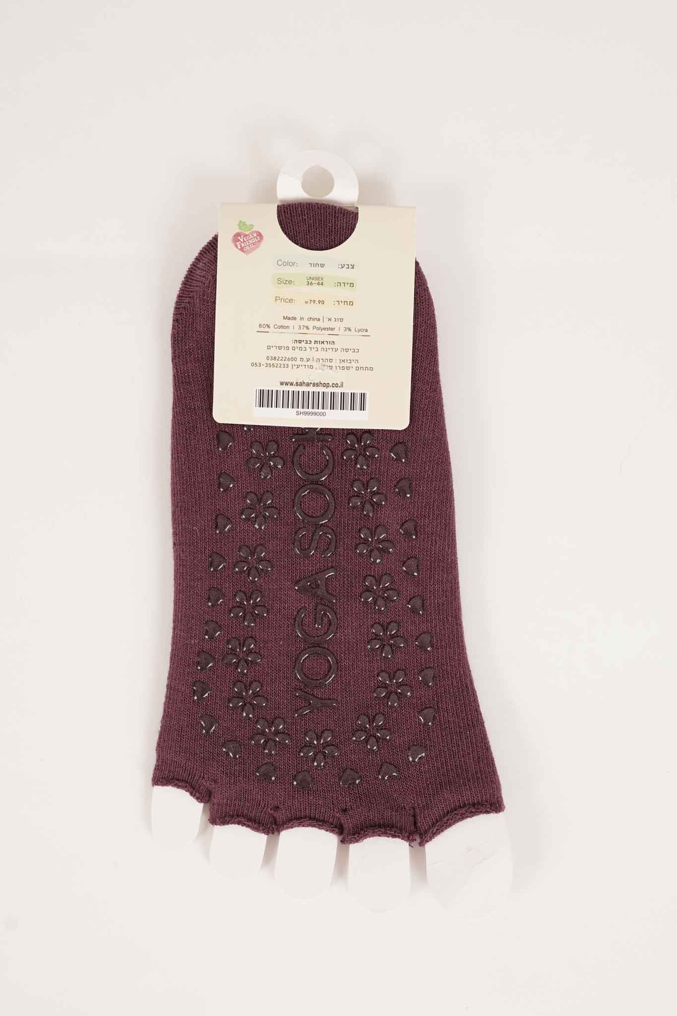 גרבי איקס ללא אצבעות לפילאטיס ויוגה - סגול חציל
