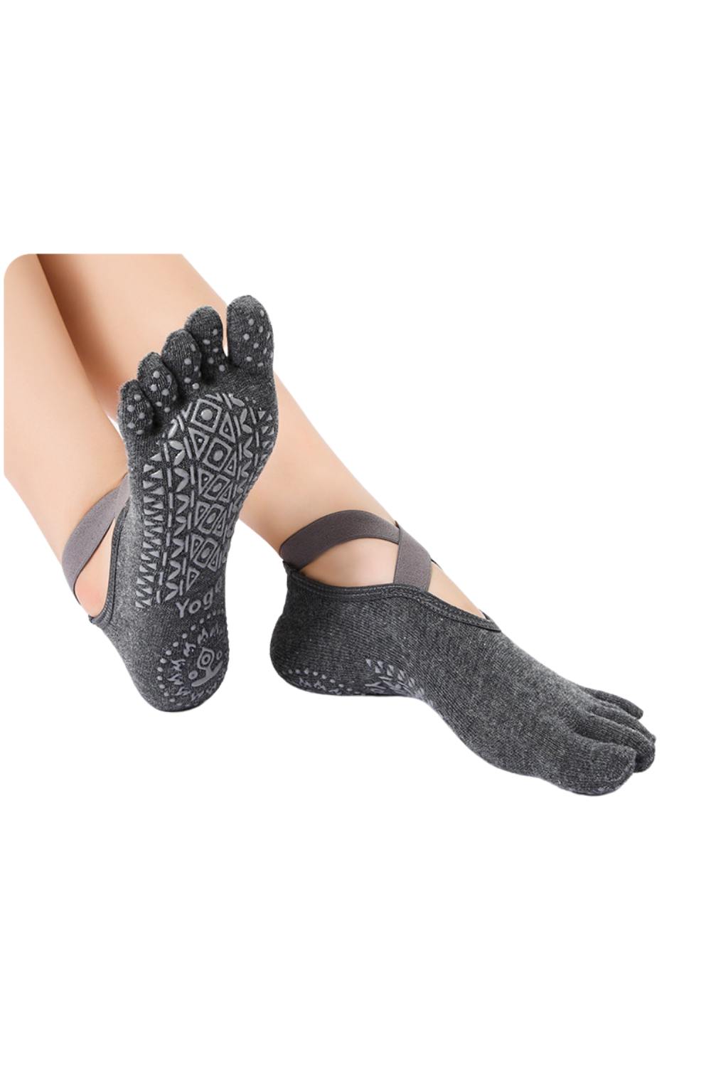גרבי איקס לפילאטיס אצבעות בודדות סגורות – אפור כהה