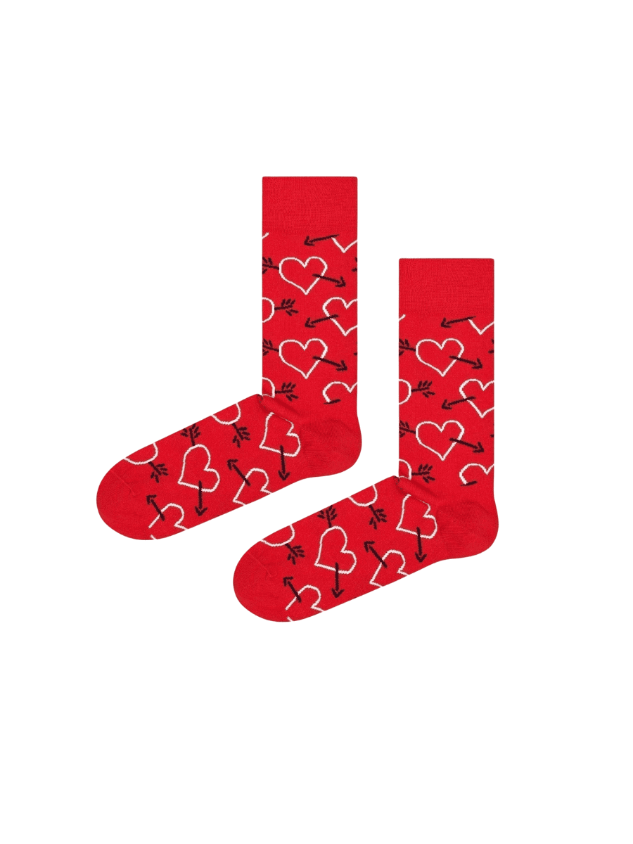 גרבי ילדים מעוצבים – לבבות עם חצים רקע אדום