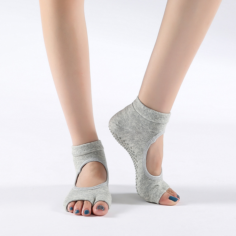 גרבי עיגול 2 פתחים באצבעות לפילאטיס – אפור בהיר
