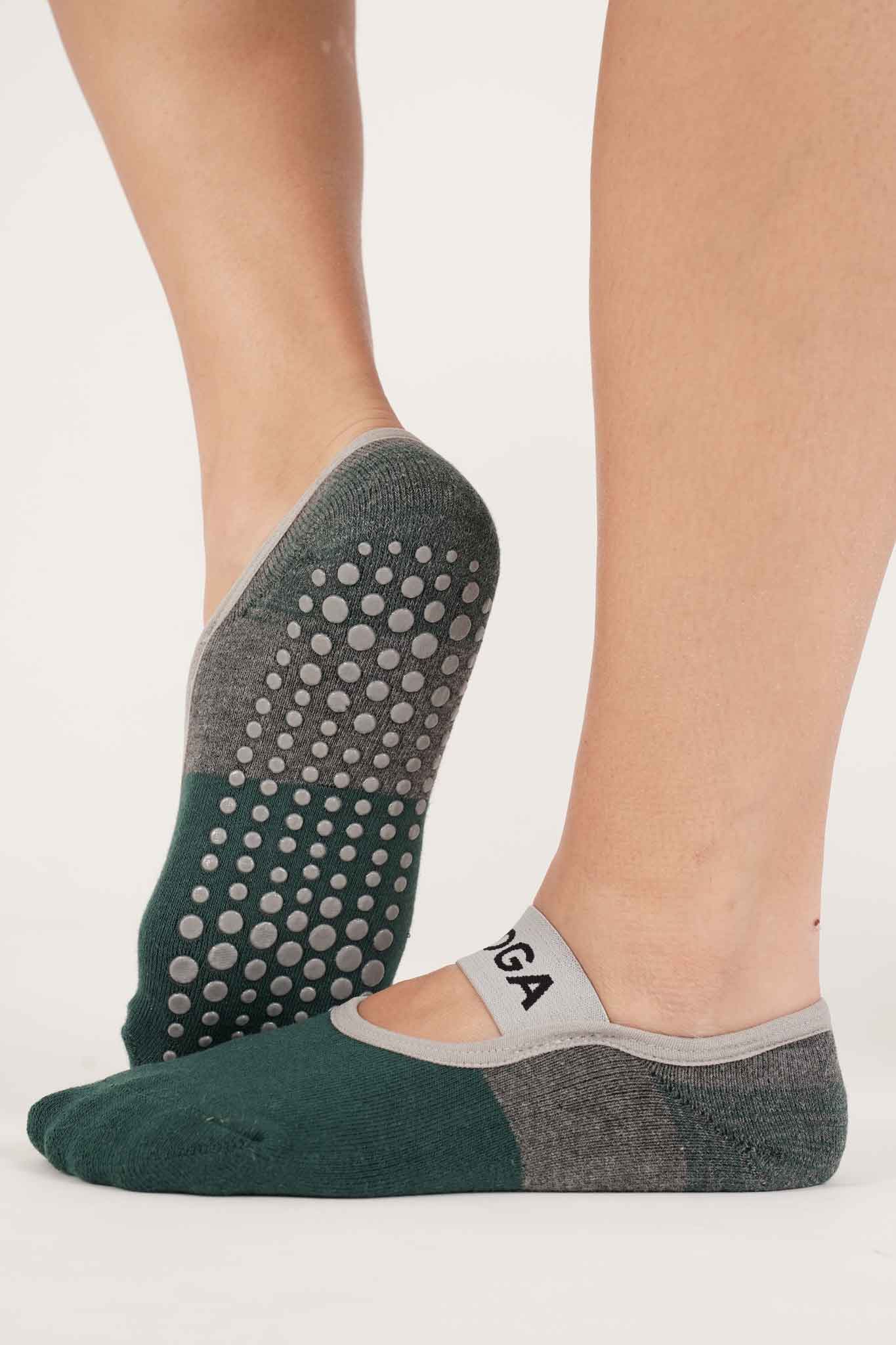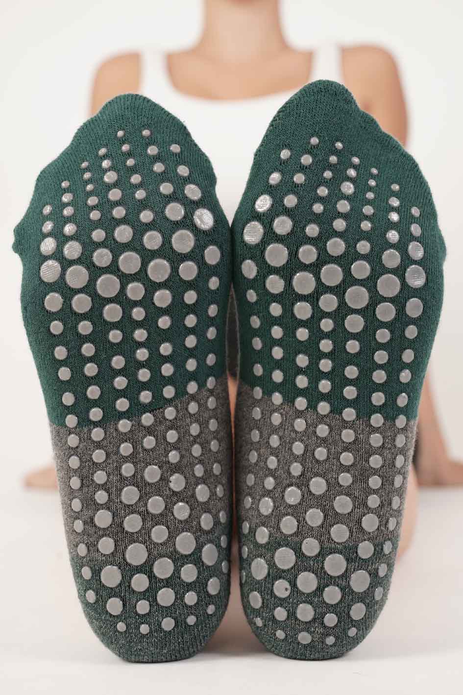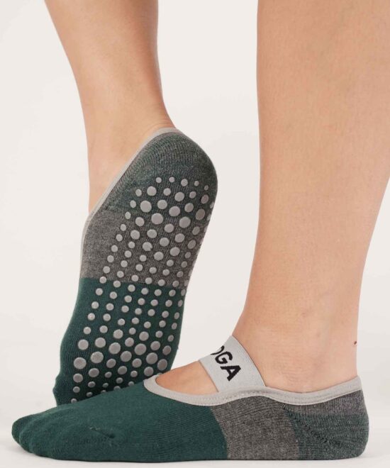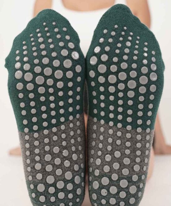 גרבי פס רחב סגור לפילאטיס ויוגה – ירוק+אפור