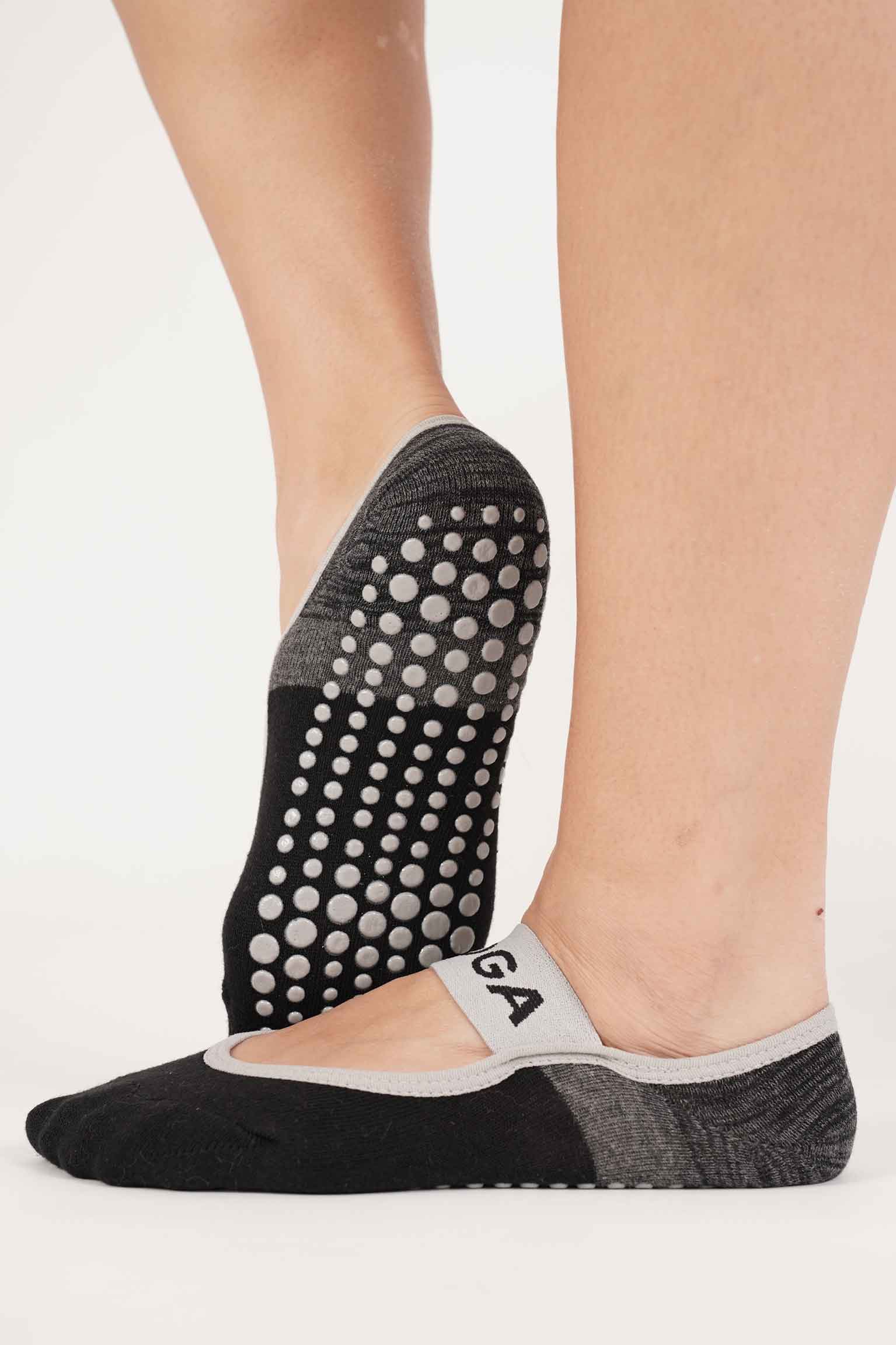 גרבי פס רחב סגור לפילאטיס ויוגה – שחור+אפור