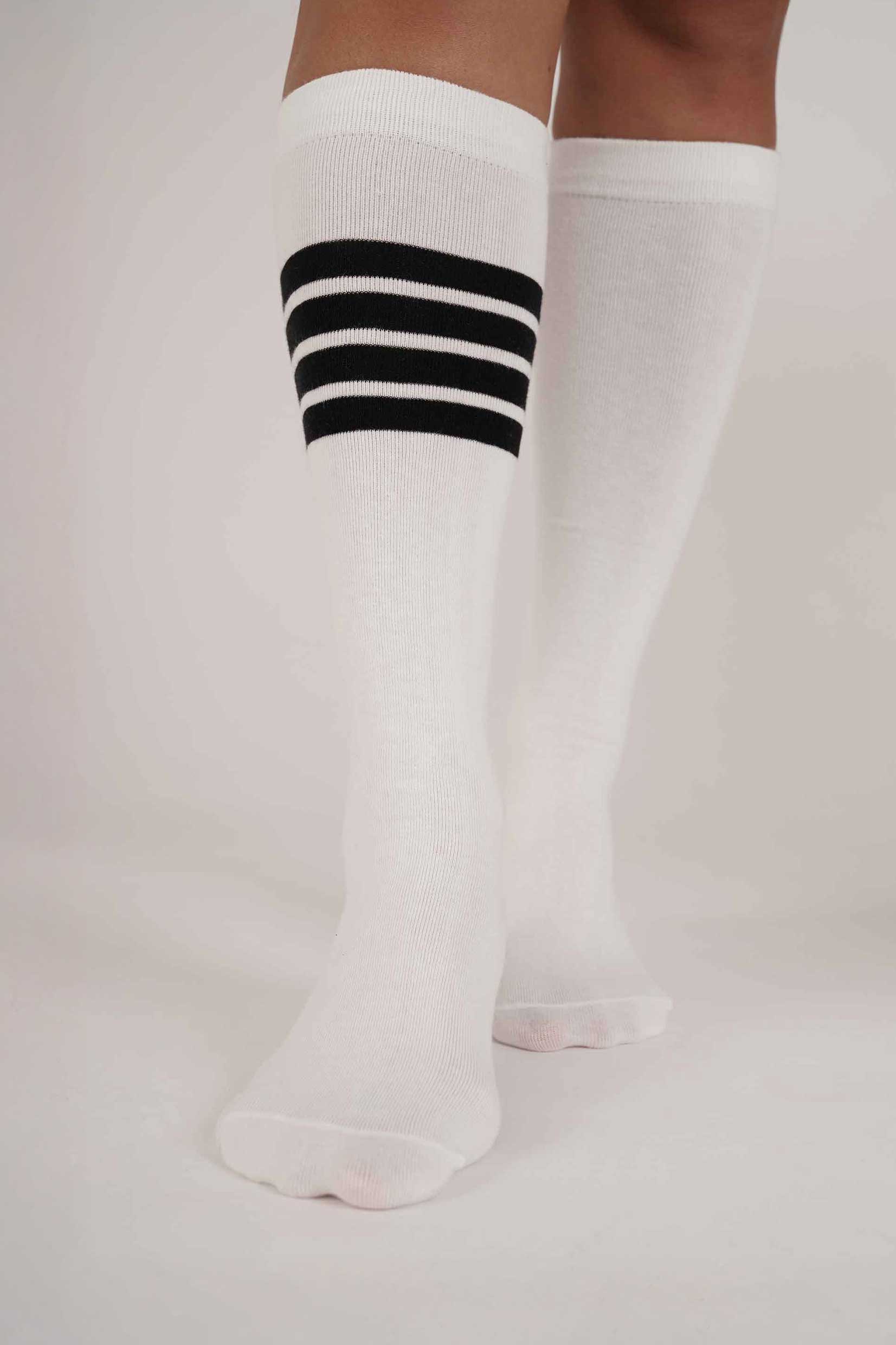 גרב גבוהה 4 פסים לפילאטיס ויוגה – לבן
