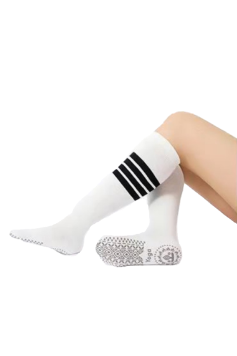 גרב גבוהה 4 פסים לפילאטיס – לבן