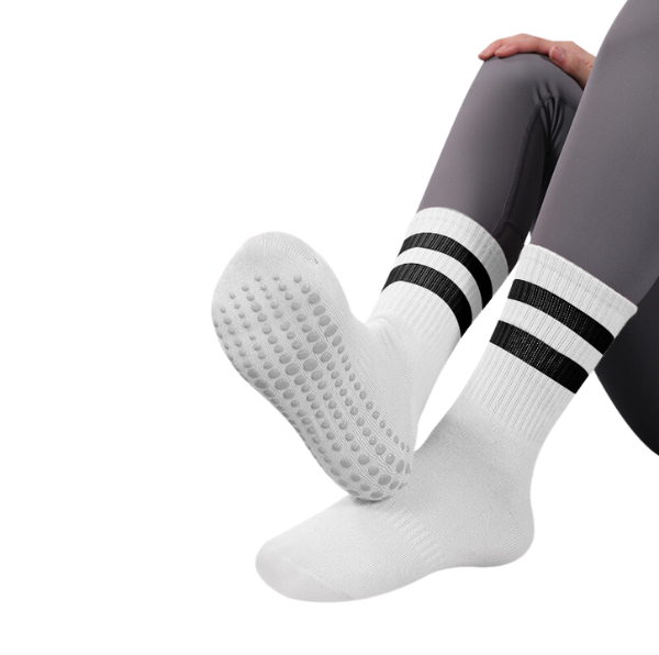 גרב 2 פסים ללא אצבעות לפילאטיס – לבן