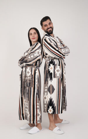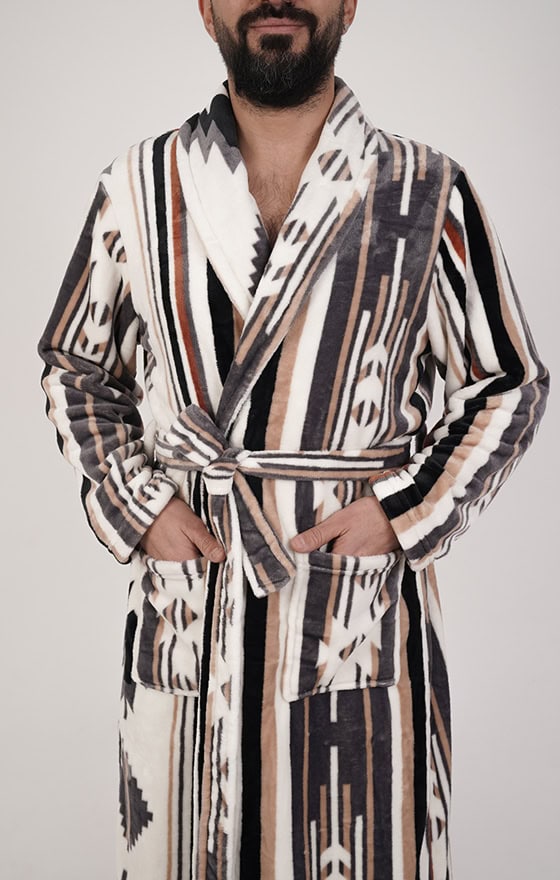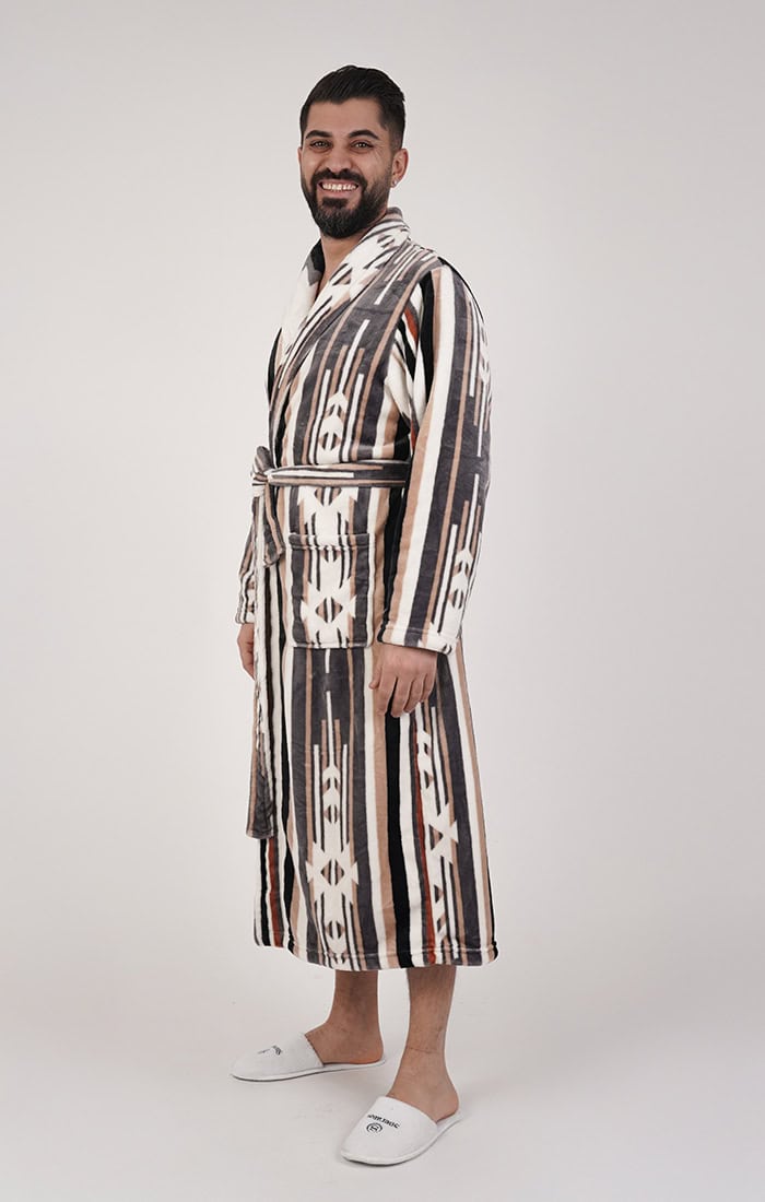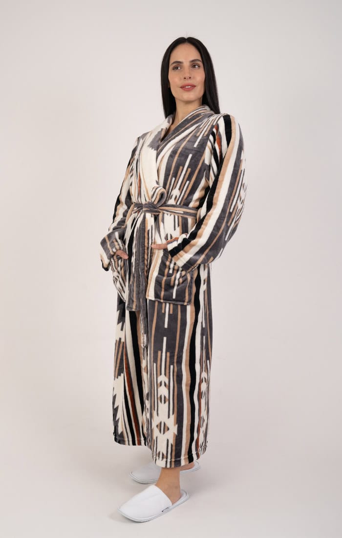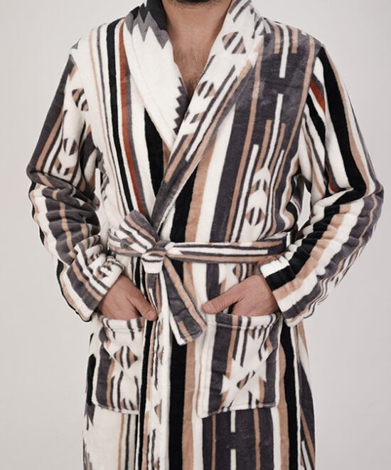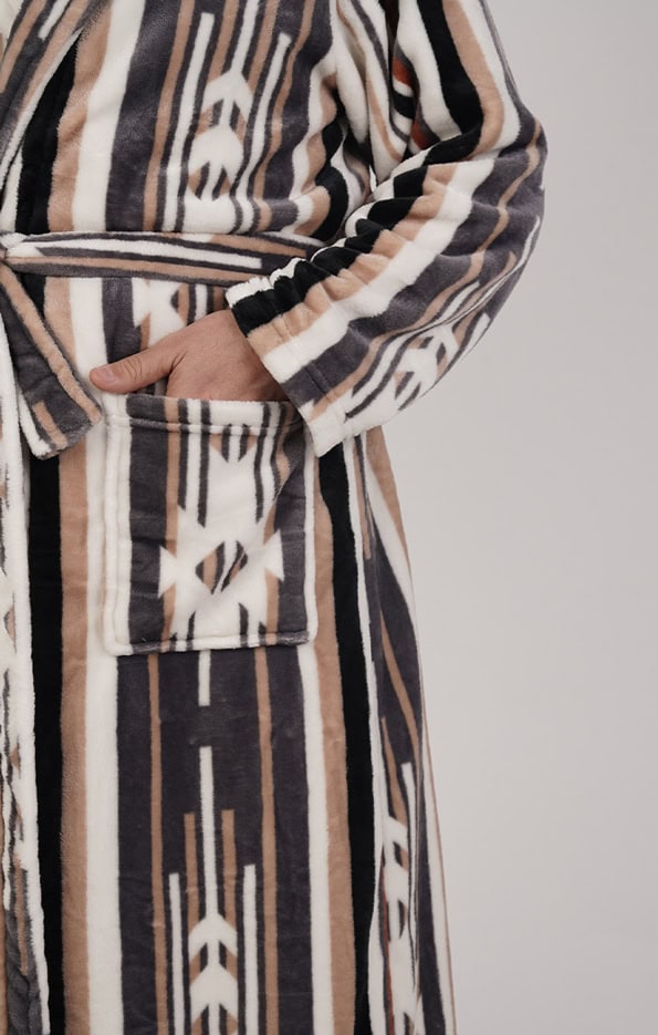 חלוק פליז מפנק במיוחד בלי כובע – פסים מדבריים