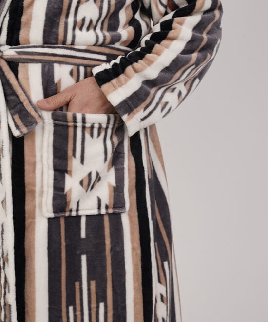 חלוק פליז מפנק במיוחד בלי כובע - פסים מדבריים
