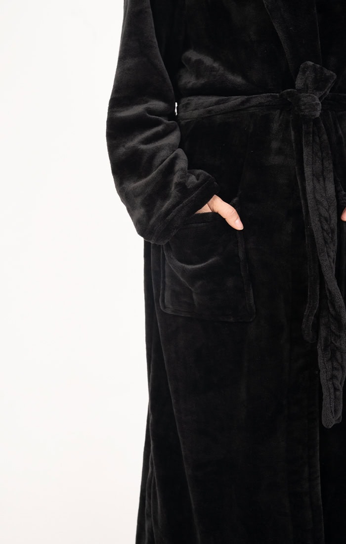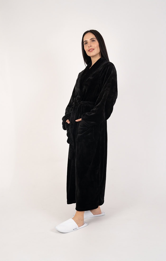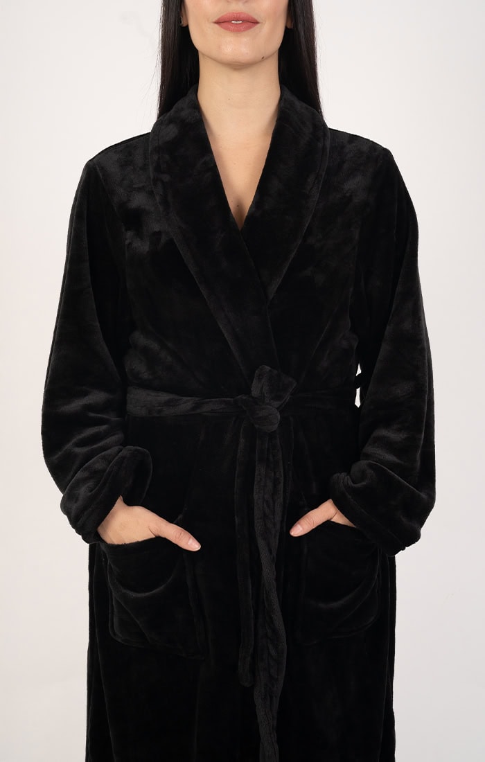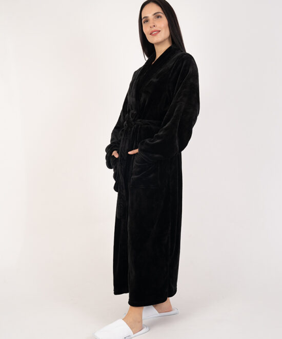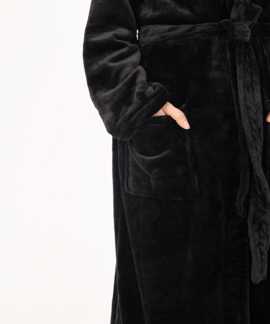חלוק פליז מפנק במיוחד בלי כובע – צבע שחור