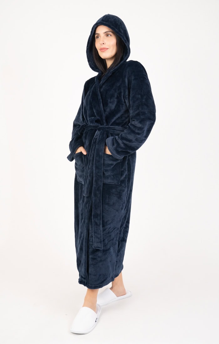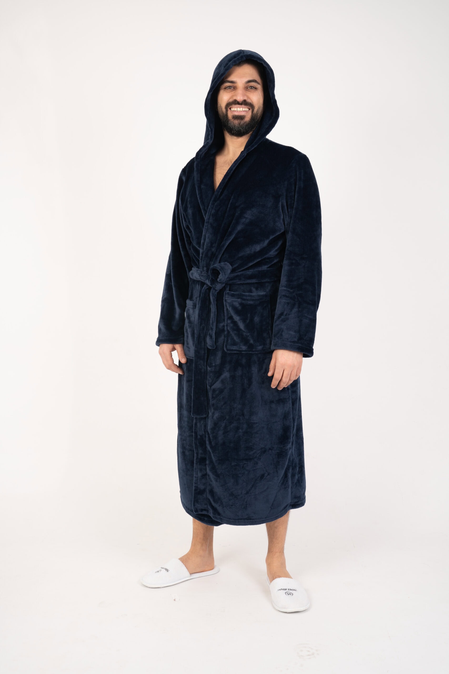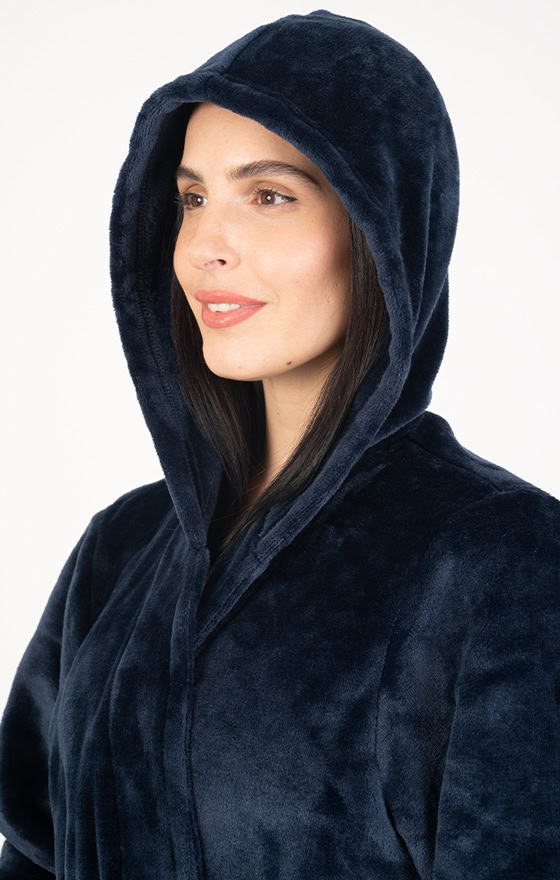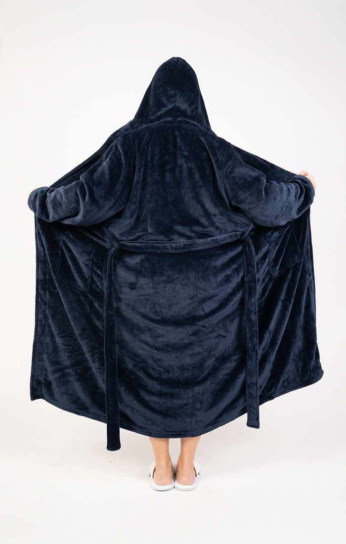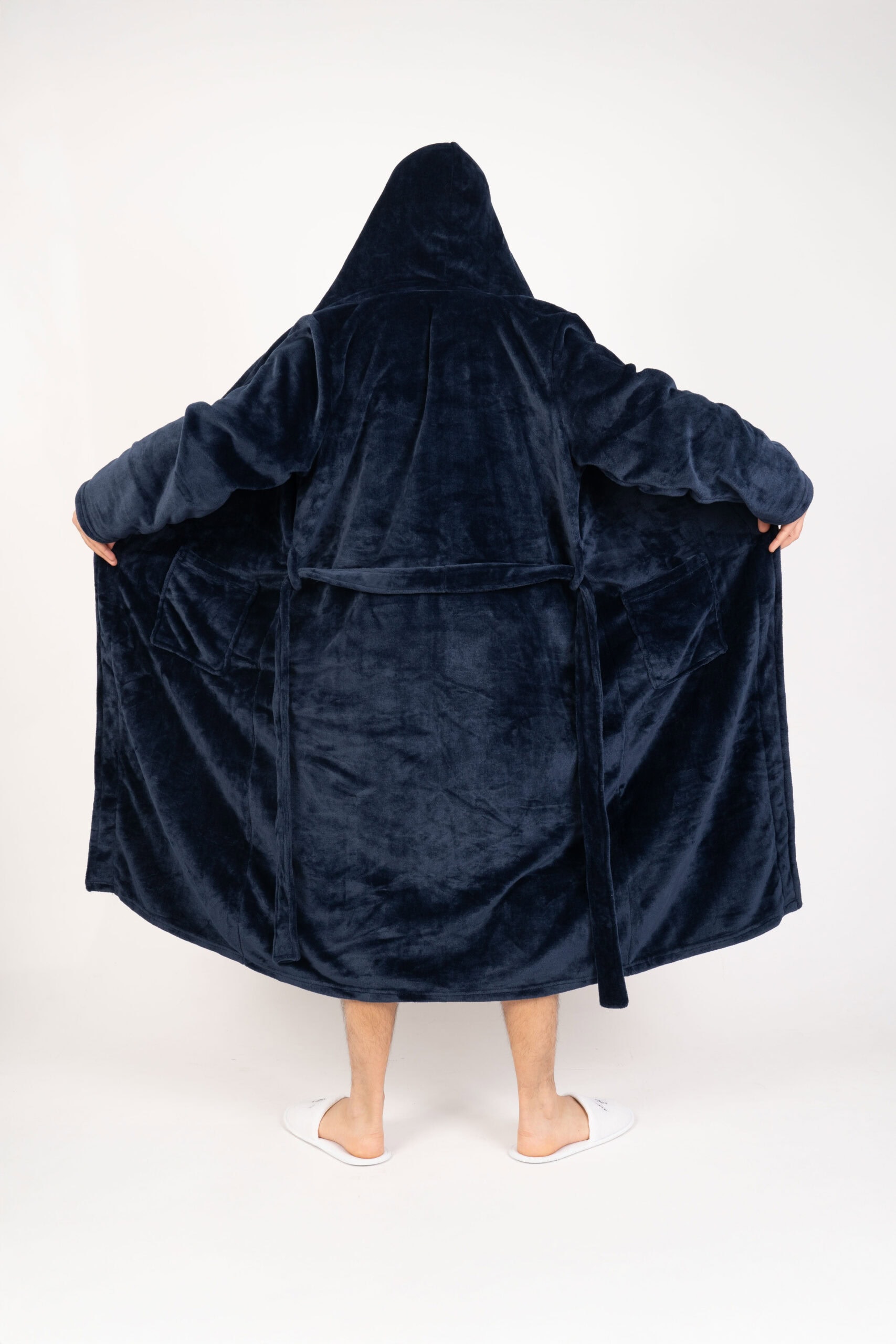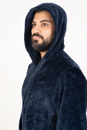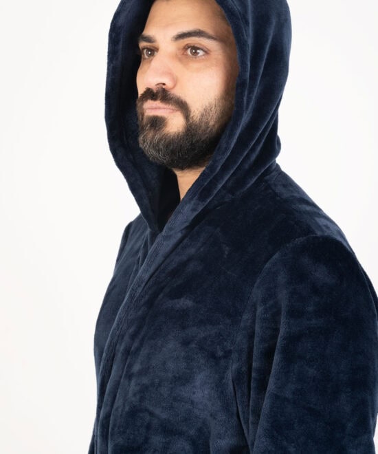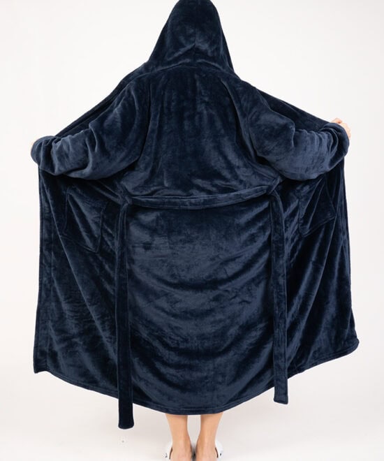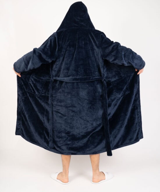 חלוק פליז מפנק במיוחד עם כובע – צבע כחול