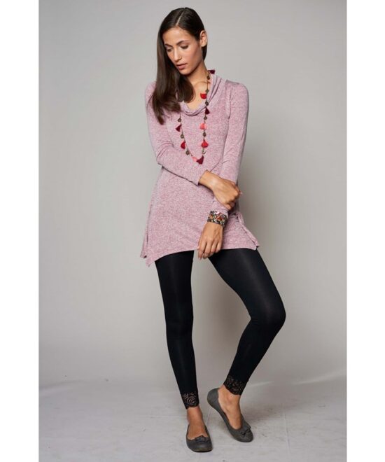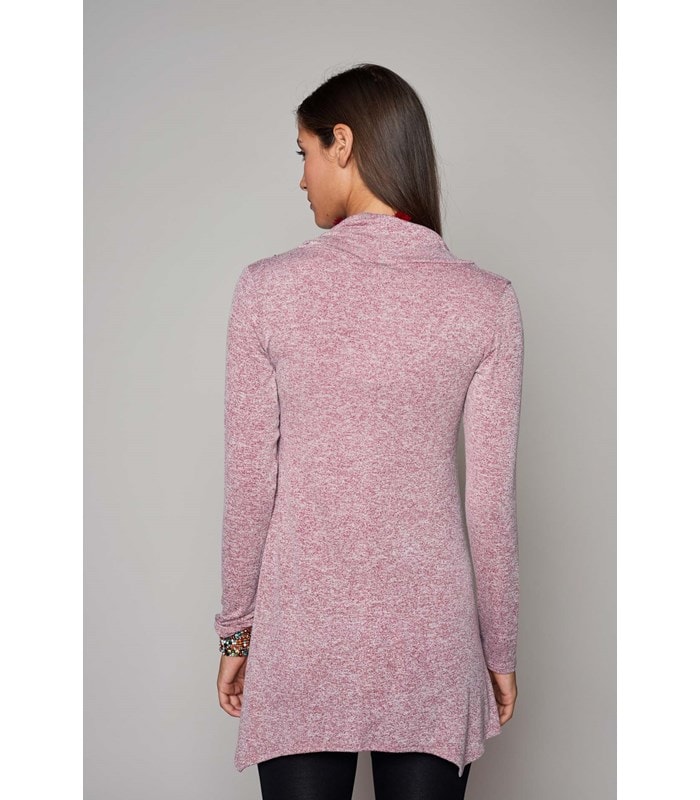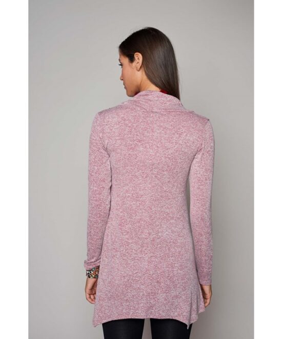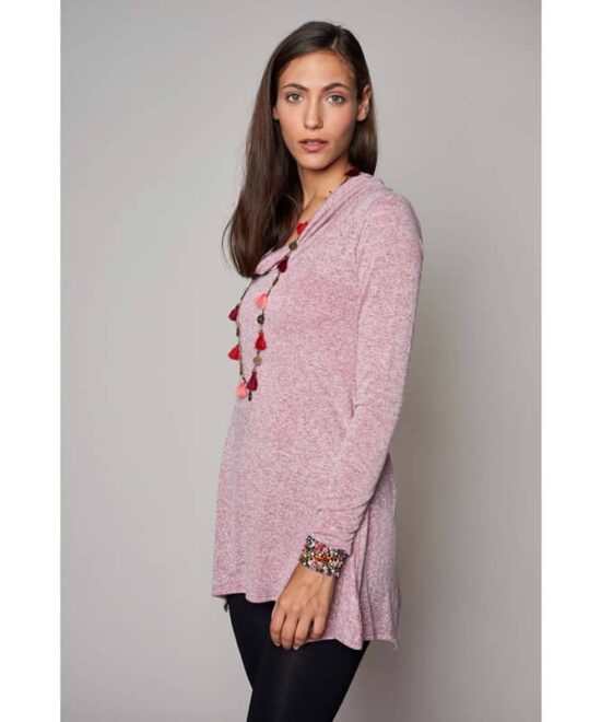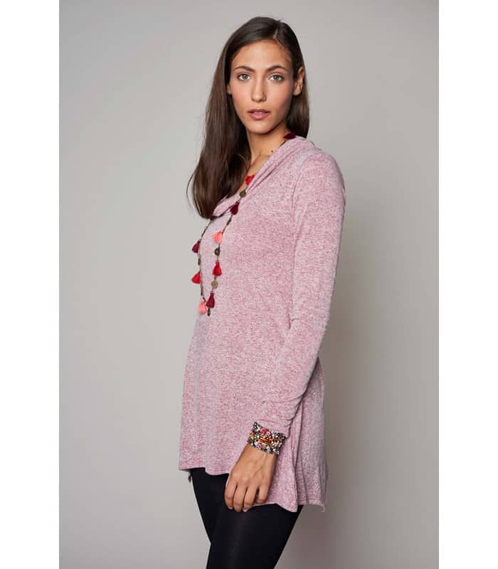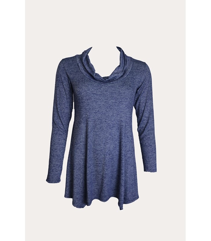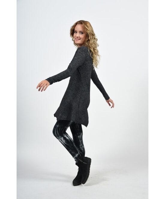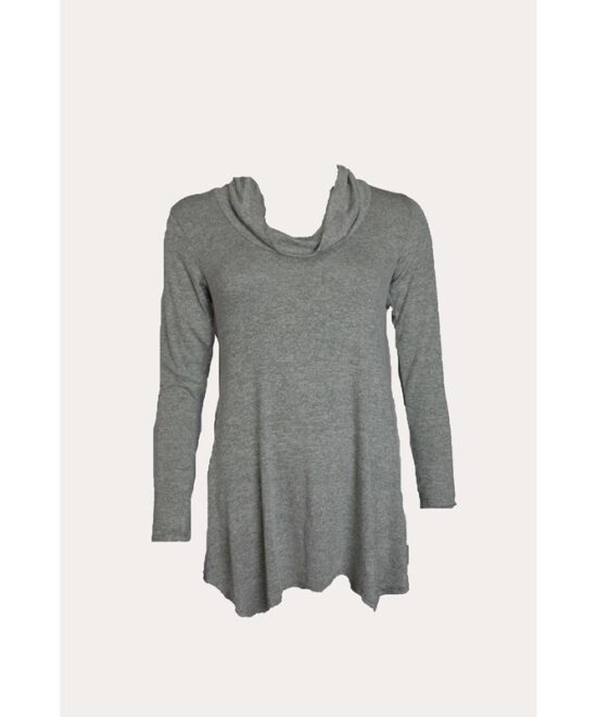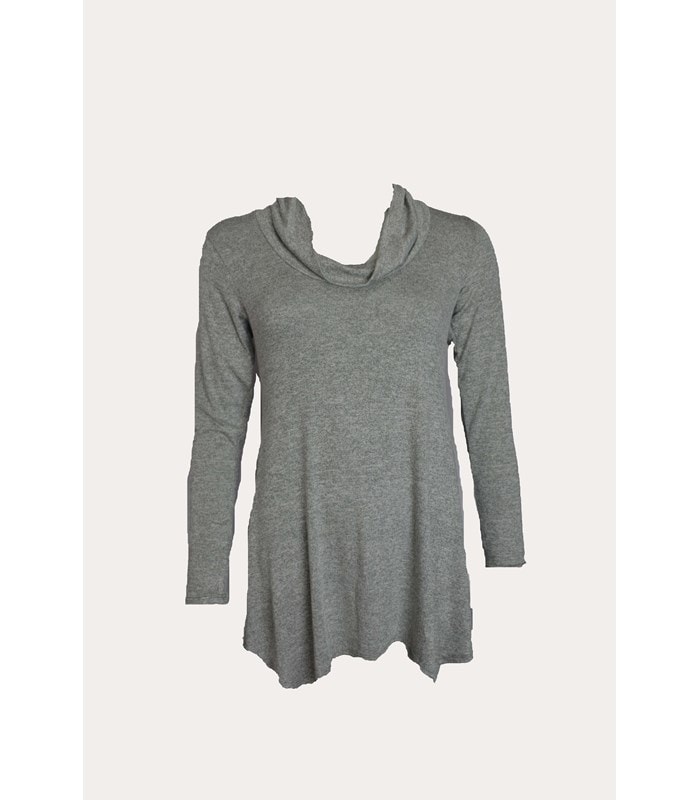 טוניקה בגזרה רחבה מבד מפנק ונעים עם סיומת משולשים א-סימטרית, שרוולים ארוכים ומחשוף רבידה רחב ומחמיא