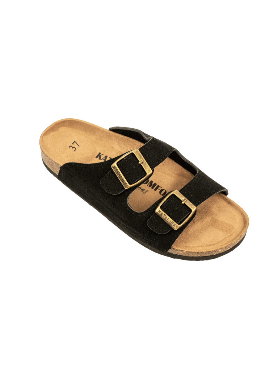 כפכפי נוחות אורטופדיים 2 אבזמים – צבע שחור זמש