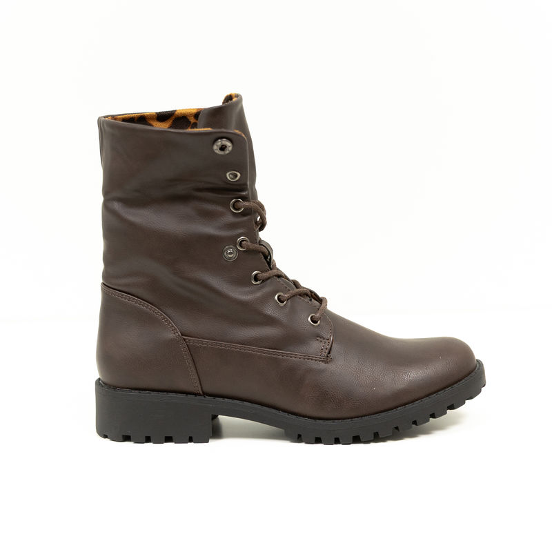 מגפיים מתקפלים - חום כהה בד פנימי מנומר כאמל