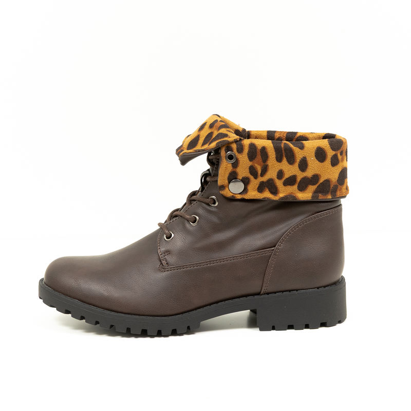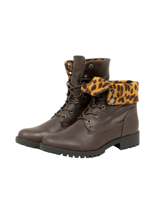 המגפיים המתקפלים חום כהה עם בד פנימי מנומר כאמל מעניקים לך שתי אפשרויות לבישה באותו זוג.