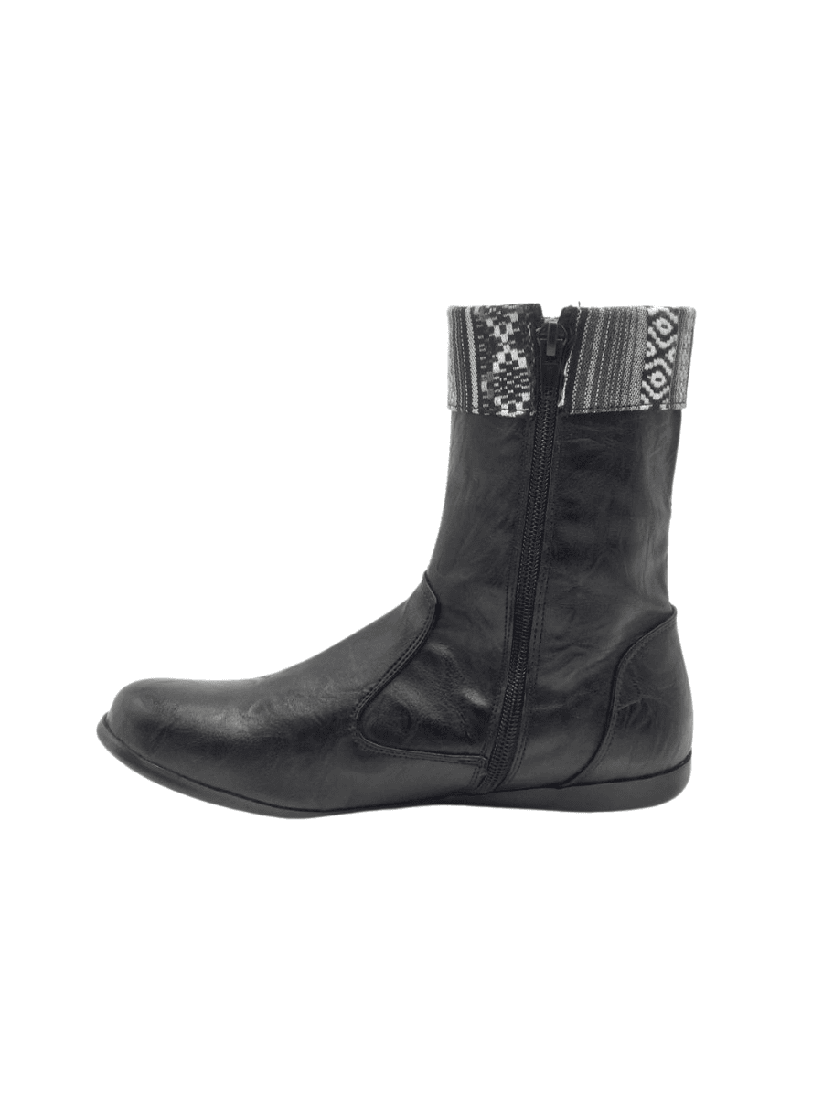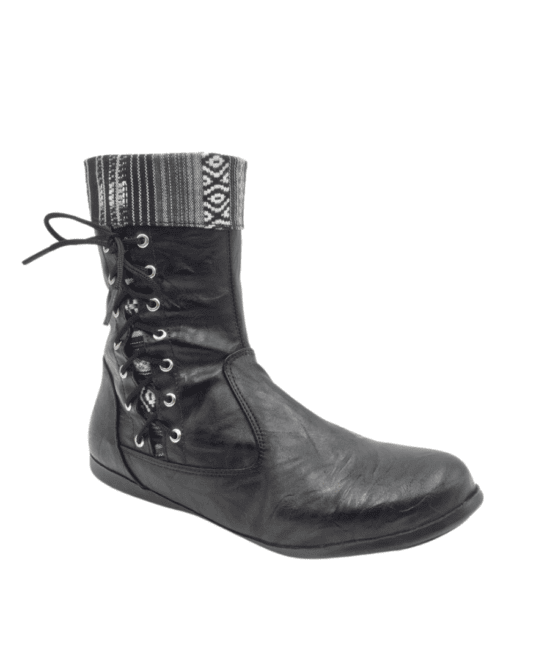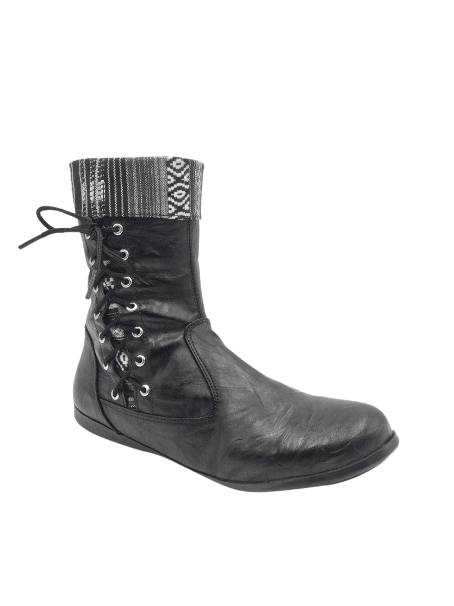 מגפי טומי מוברש שחור + פסים אתני