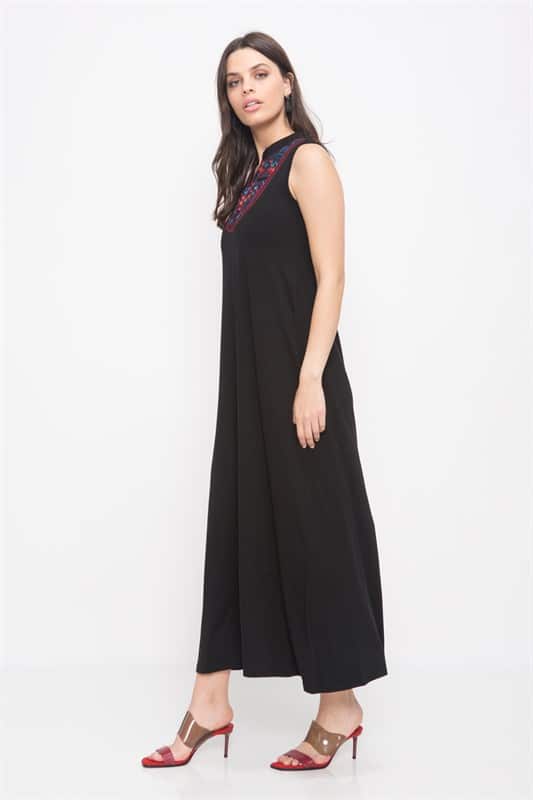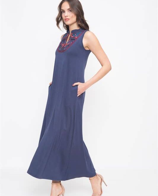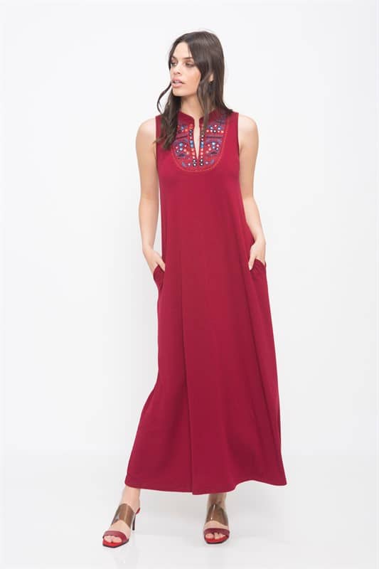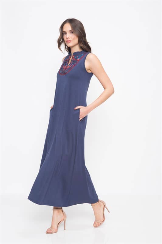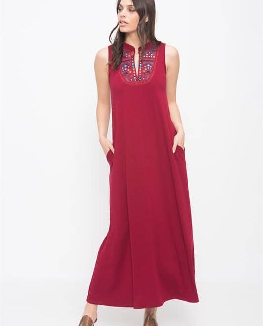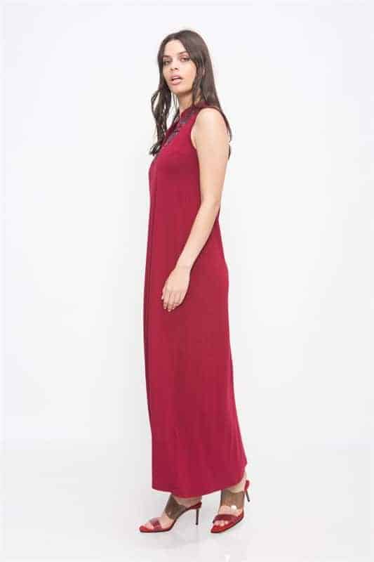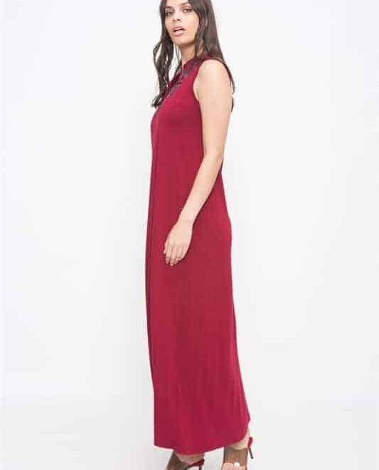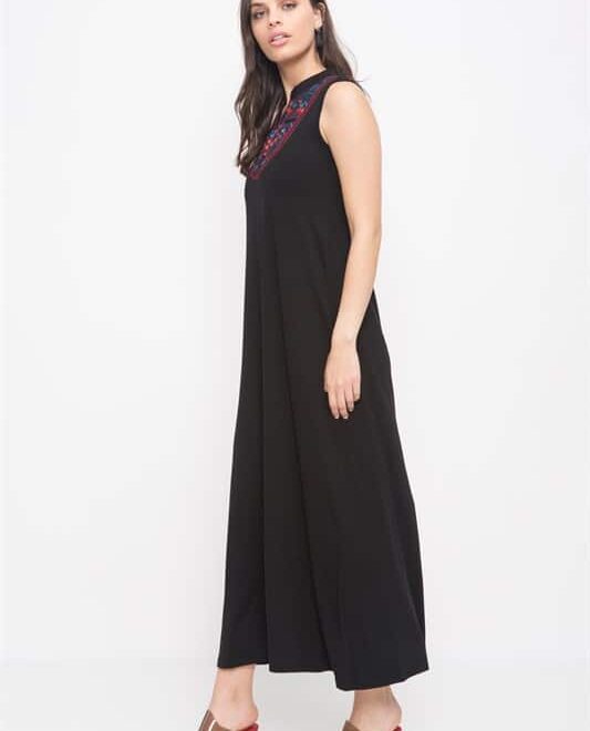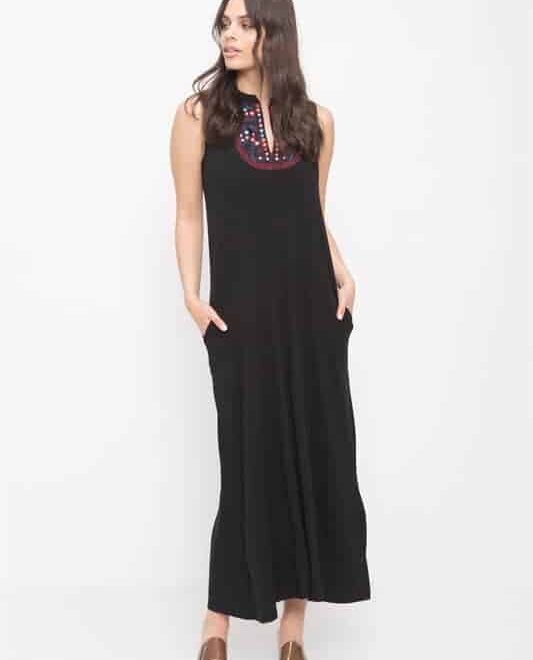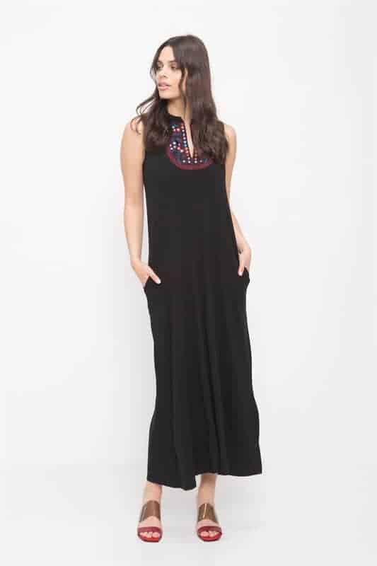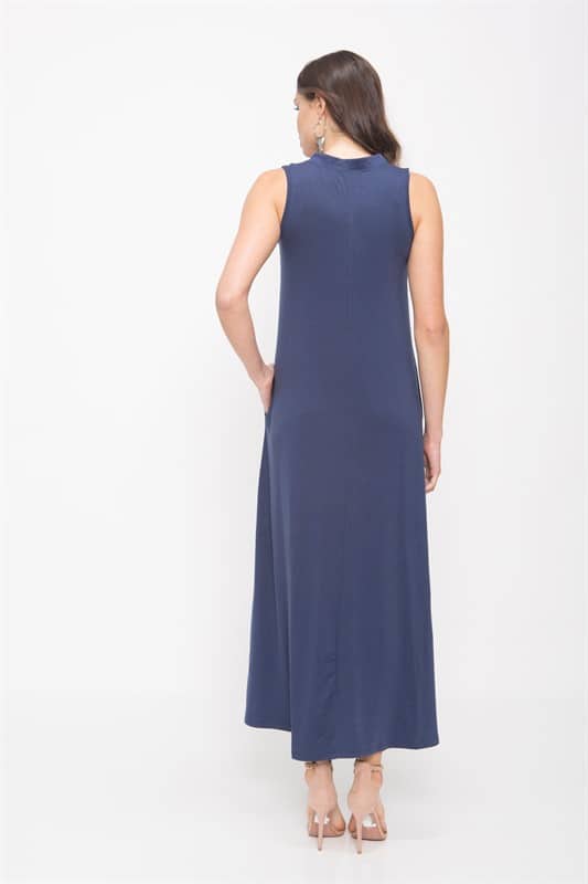 שמלת מקסי ללא שרוולים עם כיסים וליבית בחזה עם מראות