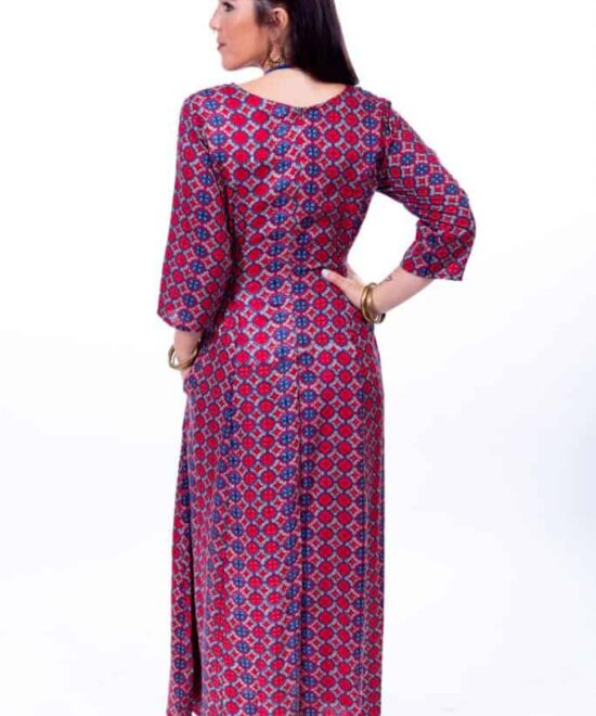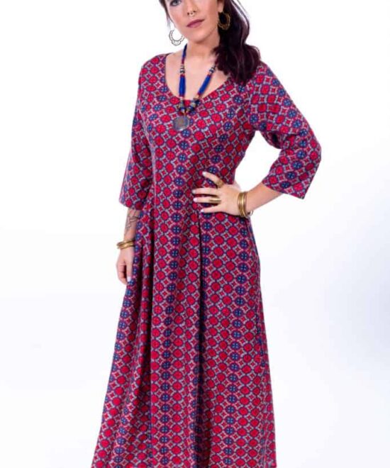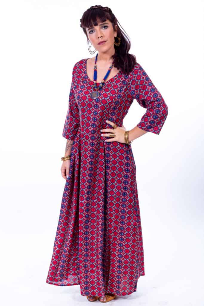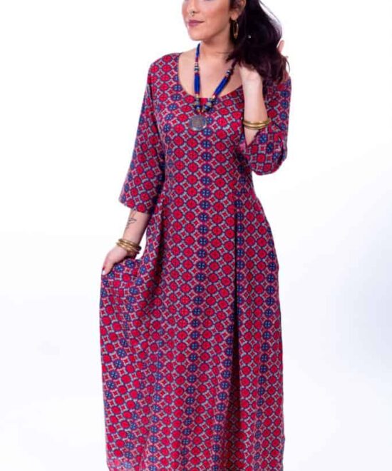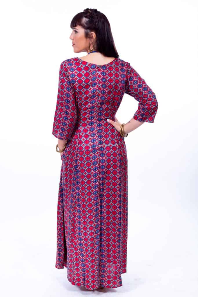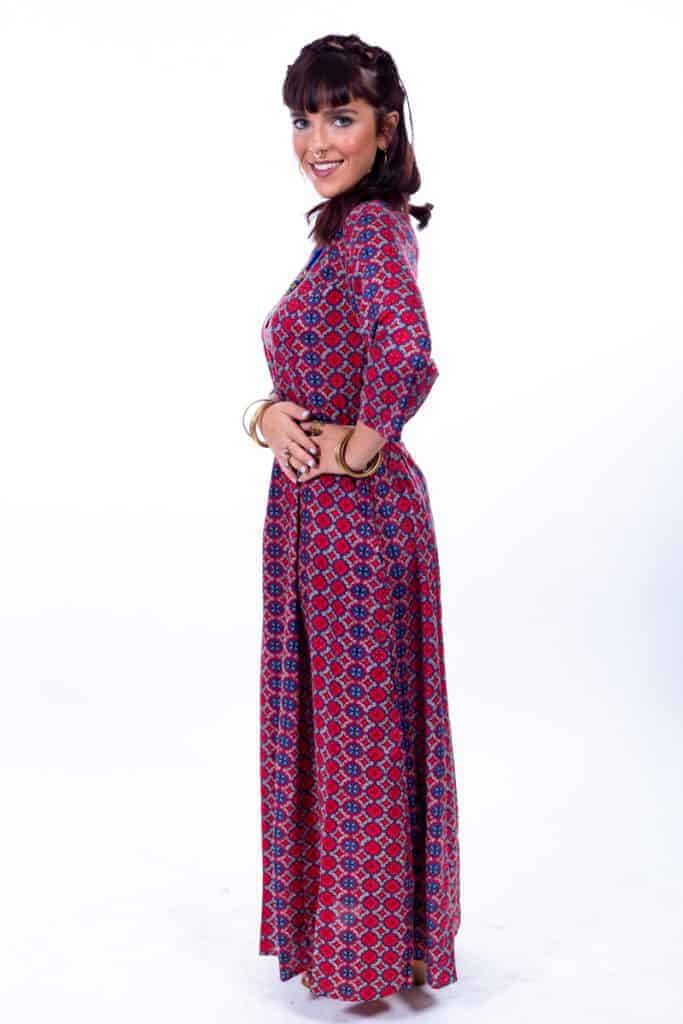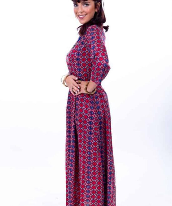 שמלת מקסי עם שרוולי 3/4 עשירה בבד, בהדפסים יפהפיים וחגיגיים. כיווץ גומי במותניים להתאמה מדויקת, סגירת רוכסן בגב וכמובן- כיסים!
