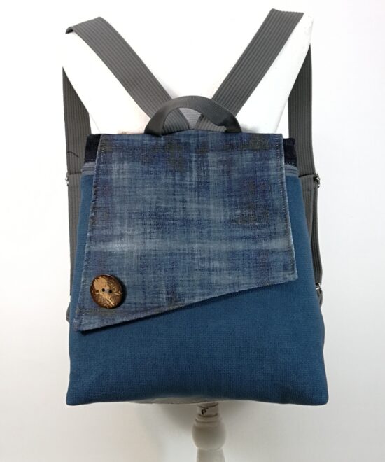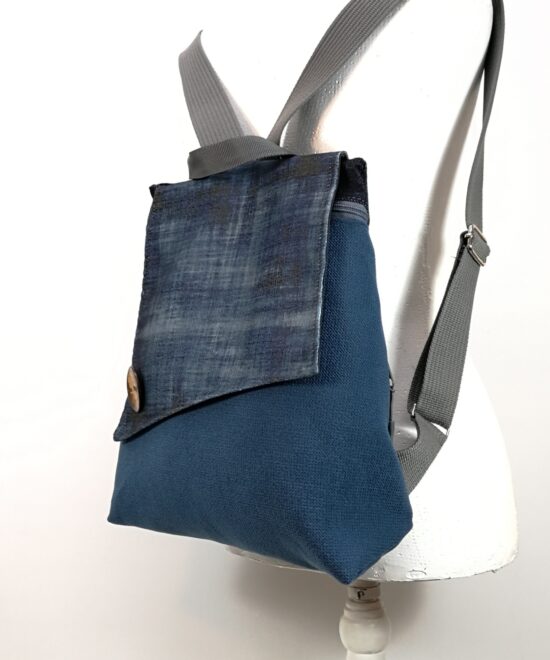 חומרים: בדי ריפוד, קנבסים, בדים מודפסים, בחזית התיק כפתור לקישוט.