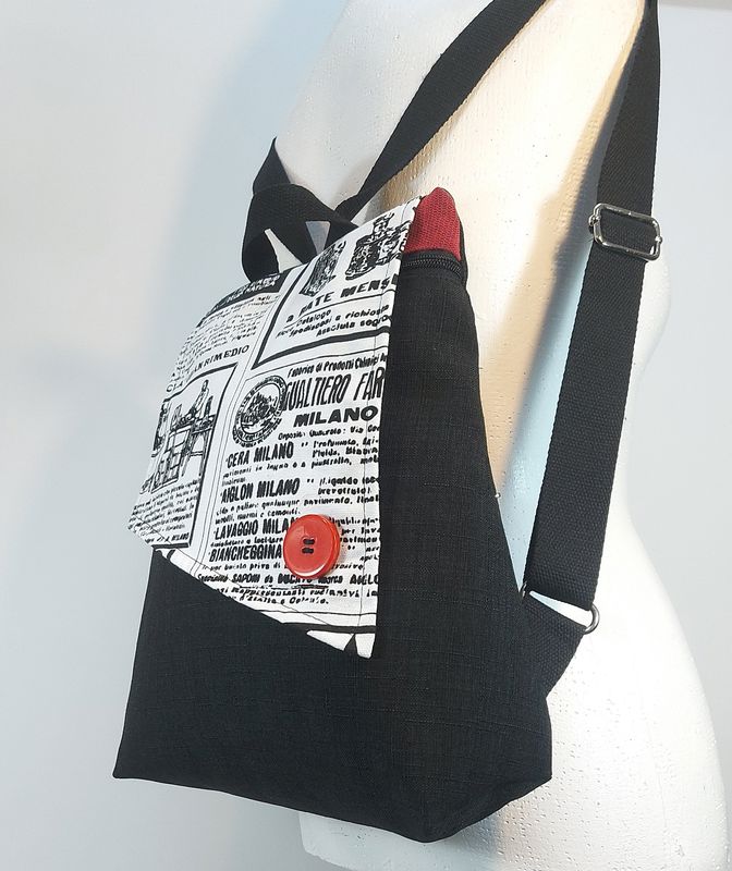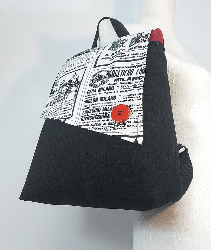 תיק עם שיק – תיק גב מאיה עיתון שחור נגיעות אדום