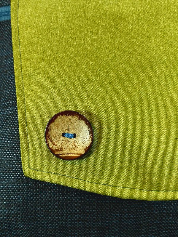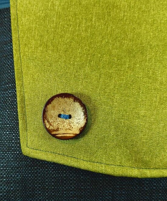 חומרים: דמויי עור, בדי ריפוד, גינסים ודרילים, קנבסים, בדים מודפסים, בכל תרמיל כפתור גדול ומיוחד שמקשט את המוצר.